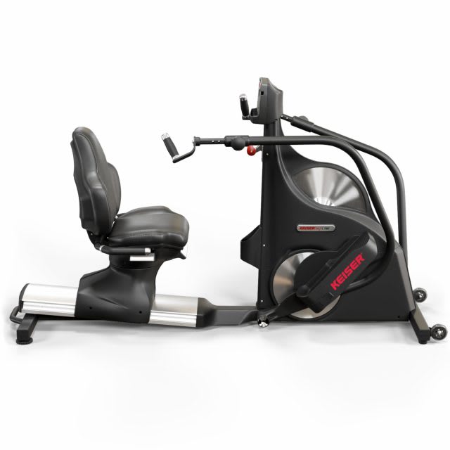 Используя технологию магнитного сопротивления Keiser, лежачий степпер M7i Total Body обеспечивает плавный и бесшумный подъем по лестнице из удобного положения лежа. Он оснащен полностью регулируемым сиденьем, которое поворачивается для удобства пересаживания с инвалидной коляски, и очень низкой (3 дюйма/76 мм) высотой ступеньки между сиденьем и педалями, что облегчает и безопаснее посадку и закрепление на месте. Накладка для ног поддерживает угловое положение стопы при полном ходе педалирования. Она шарнирно соединяется, чтобы свести к минимуму изменение сгибания голеностопа при вращении педалей, обеспечивая более комфортное упражнение. Она также оснащена системой сопротивления верхней части тела для тренировки всего тела с низкой отдачей. Благодаря дополнительным стабилизаторам стопы и голеней, а также ремешкам на запястьях M7i идеально подходит для людей, перенесших инсульт и другие травмы головного и спинного мозга, а также для пациентов, проходящих кардиореабилитацию.