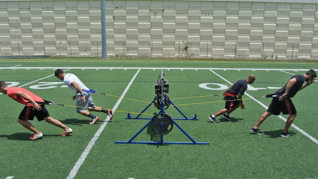 Функциональность блока в том, что он позволяет тренерам менять вектор прикладываемого сопротивления как по горизонтали, так и по вертикали (не более 2.1 м от уровня земли) при упражнениях. То есть преодолевая сопротивление от эластичных тросов, которые с одной стороны крепятся к блоку, а с другой – к рукам, ногам или поясу спортсмена, спортсмен выполняет любые упражнения, характерные в любом виде спорта, такие как выпады, прыжки, латеральные движения, упражнения с координационной дорожкой и др.
