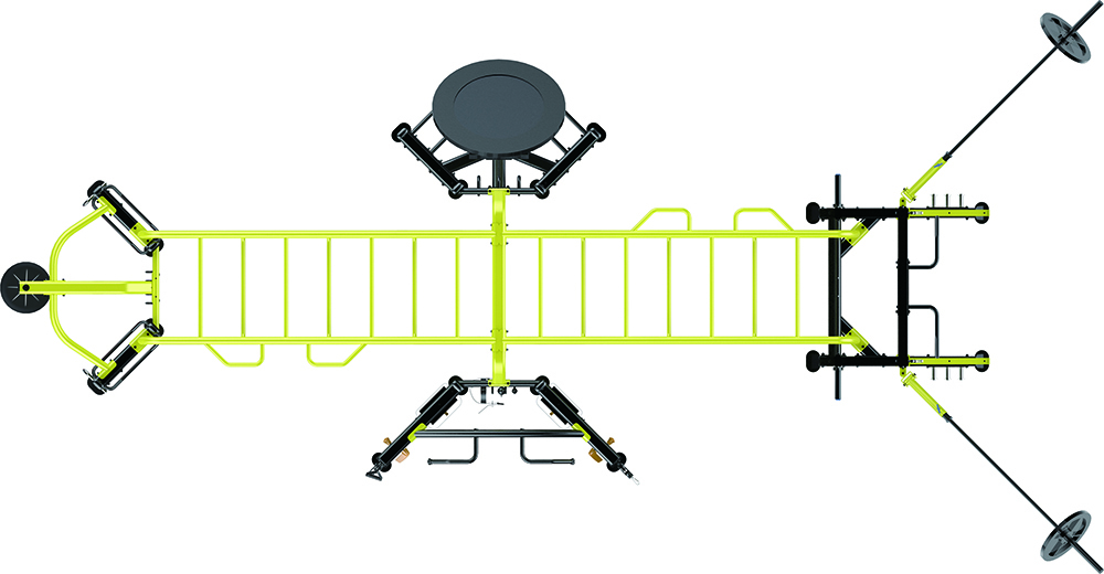 - Комплекс из 4х модулей в форме буквы "X", состоит из: зоны бокса (без боксерского мешка), зоны реакции, зоны силовой нагрузки (силовой рамы) и двойной регулируемой тяги, соединенных между собой посредством 2-х «рукоходов» и специальной перекладины, включающий плио платформу, опору для отжиманий (брусья) и шарнирный крепеж для грифа.