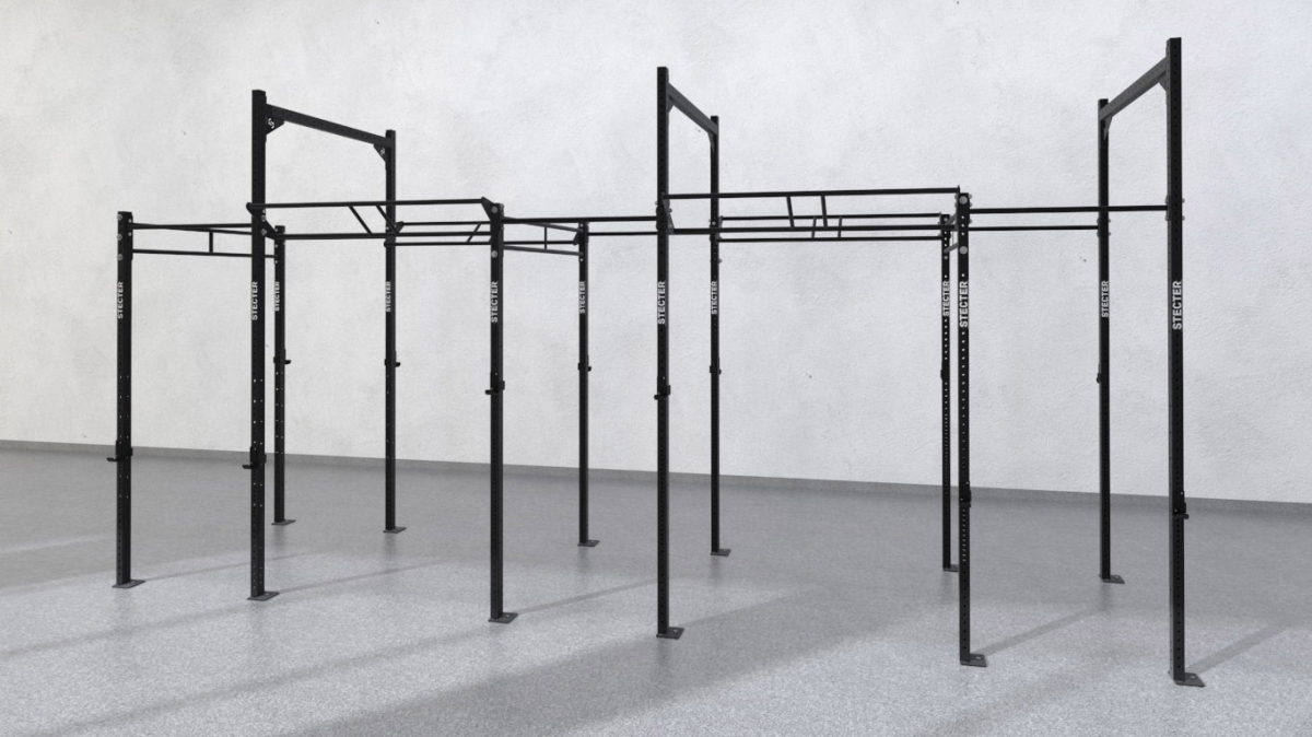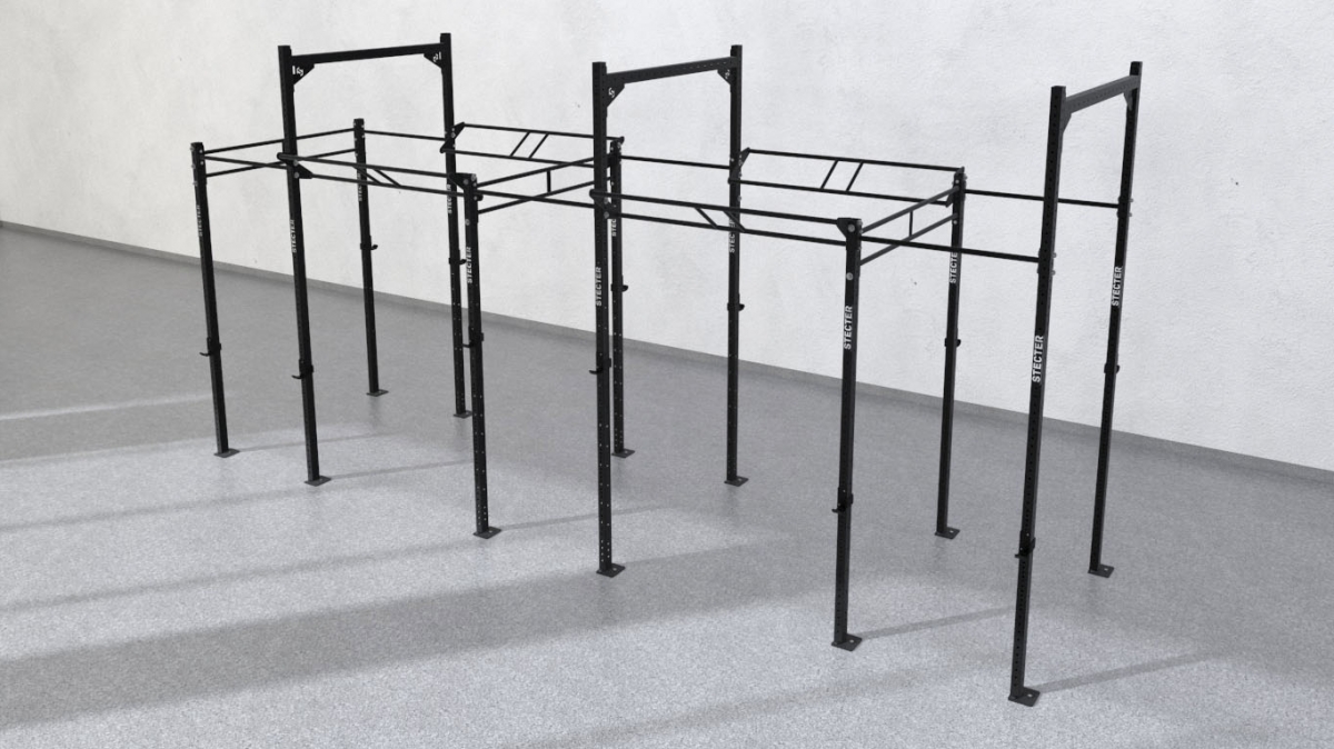 Функциональная рама STECTER 6900х1800 отлично подходит для кроссфита и функционального тренинга. Она состоит из пролетов 1100 мм и 1800 мм. Опорные стойки высотой 3660 мм позволяют полноценно использовать в тренировках канат и гимнастические кольца. Разнообразные одинарные и двойные перекладины длиной 1100 мм и 1800 мм устанавливаются на различной высоте для того, чтобы атлеты с любым ростом могли комфортно выполнять упражнения.