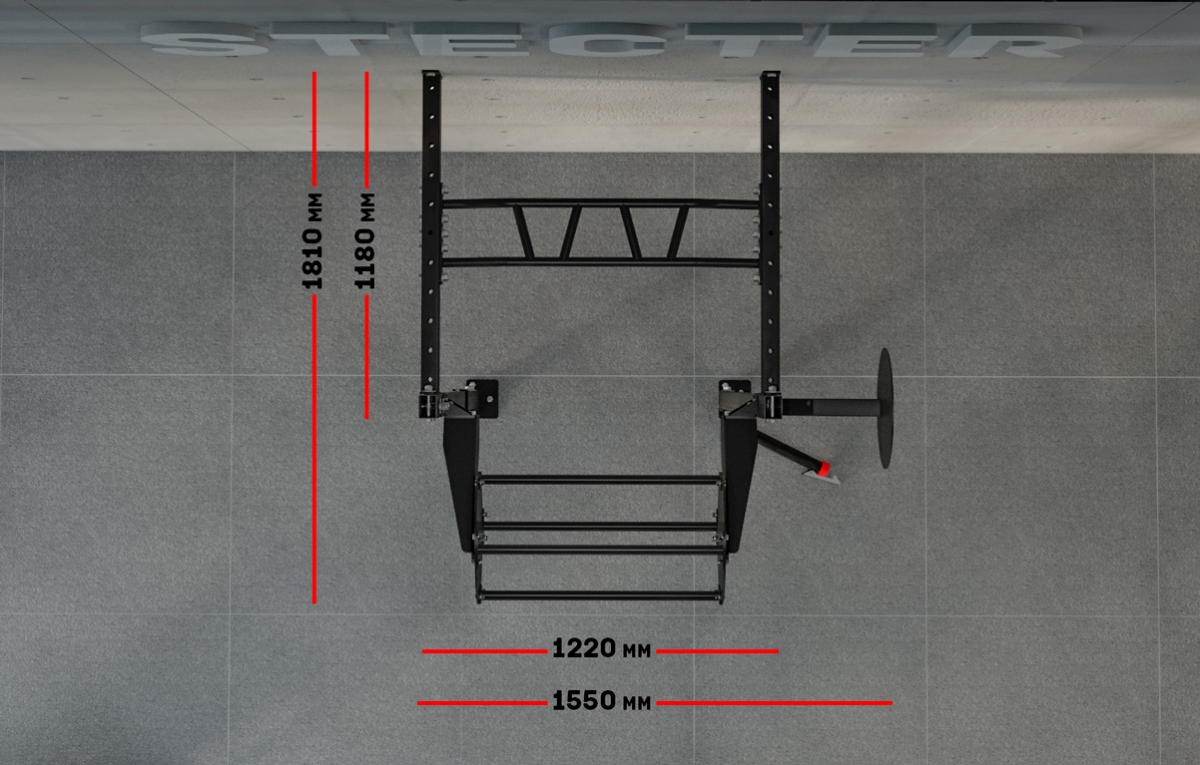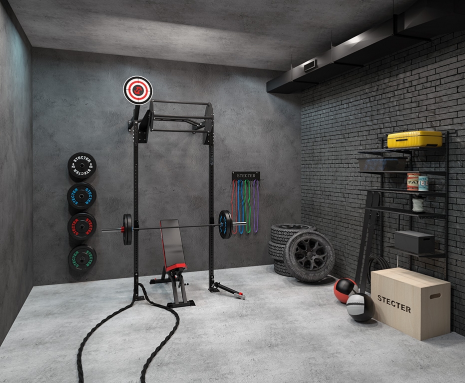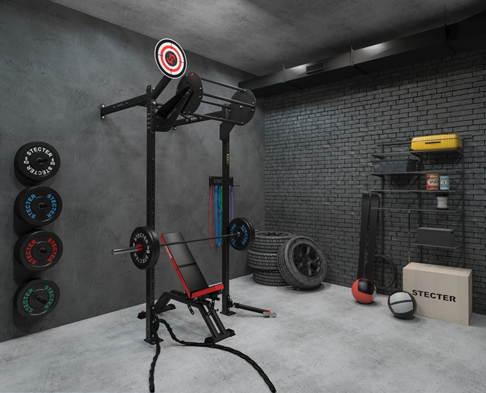 В комплекте в рамой сразу поставляются J-крюки с защитными пластиковыми накладками, мишень для медбола, кронштейн для тренировочного каната и пост для тяги Т-грифа Stecter Expert Landmine. В результате Вы получаете универсальную пристенную силовую станцию для круговой тренировки.