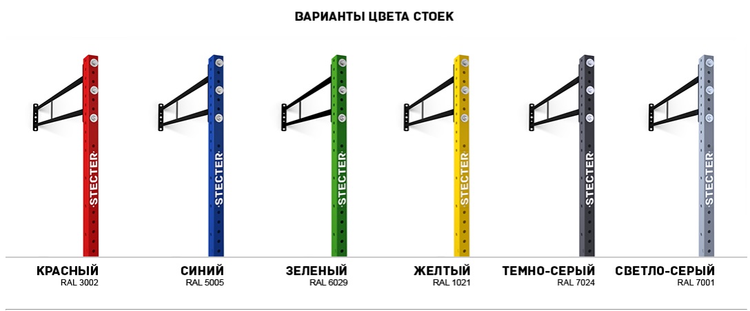 Элементы функциональной рамы для Кроссфит покрываются порошковой краской по технологии электростатического напыления и обжигаются в печи при высокой температуре. Вы можете выбрать цвет опорных стоек.