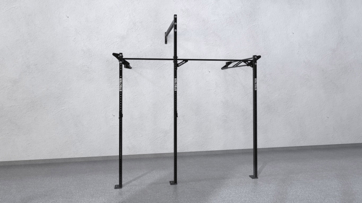 Пристенная рама представляет собой конструкцию, состоящую из трех опорных стоек из профильной трубы 80х60 мм, прикрепленных к полу. Высота стоек – 2810 мм и 3660 мм, что позволяет крепить к ним такие снаряды, как гимнастические кольца и канаты. В верхней части стойки соединяются перекладинами. В комплект входят двойные и одинарные перекладины. Функциональная рама крепится к стене в трех точках, что придает ей хорошую устойчивость и прочность.