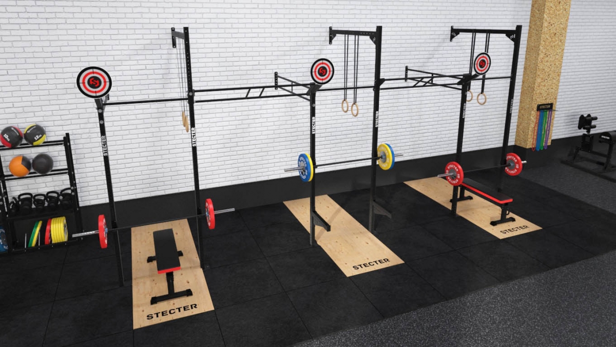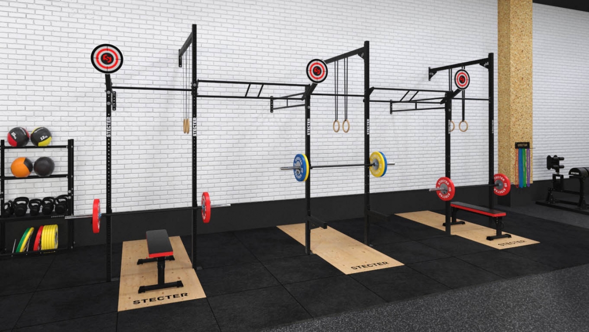 - навесные брусья; - страховочные упоры для приседаний со штангой; - J-крюки (комплект); - консольную цель для бросков медбола.