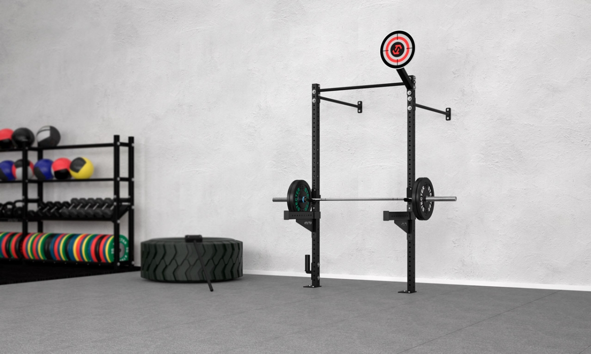 - навесные брусья; - страховочные упоры для приседаний со штангой; - J-крюки (комплект); - консольную цель для бросков медбола.