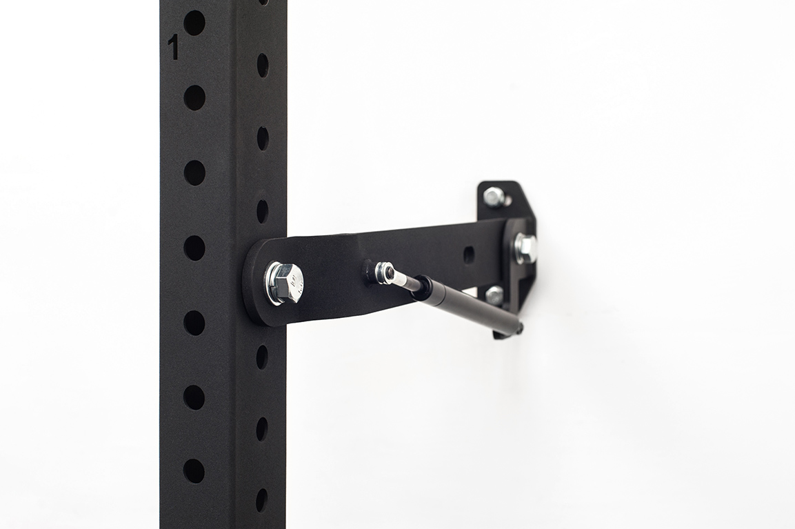 Одинарная перекладина диаметром 34 мм в разложенном состоянии может быть установлена на высоте до 2205 мм от пола. В сложенном состоянии перекладина оказывается на высоте 2634 мм от пола и может быть использована для тренировок с функциональными петлями.