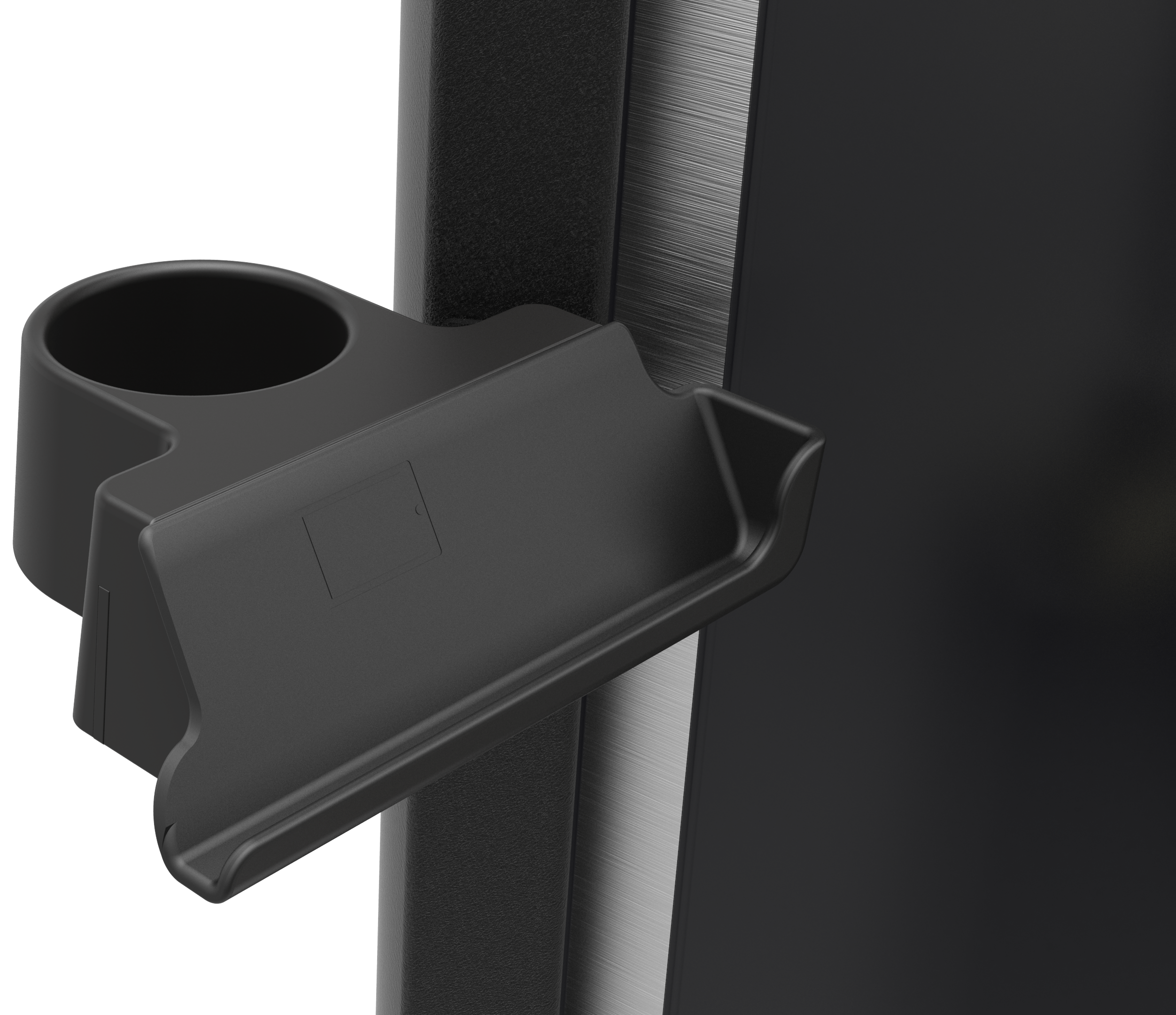 - Дизайн системы хранения аксессуаров полностью ориентирован на клиента, эргономичные ячейки для хранения бутылки и полочка для телефона или планшета находятся на расстоянии вытянутой руки.