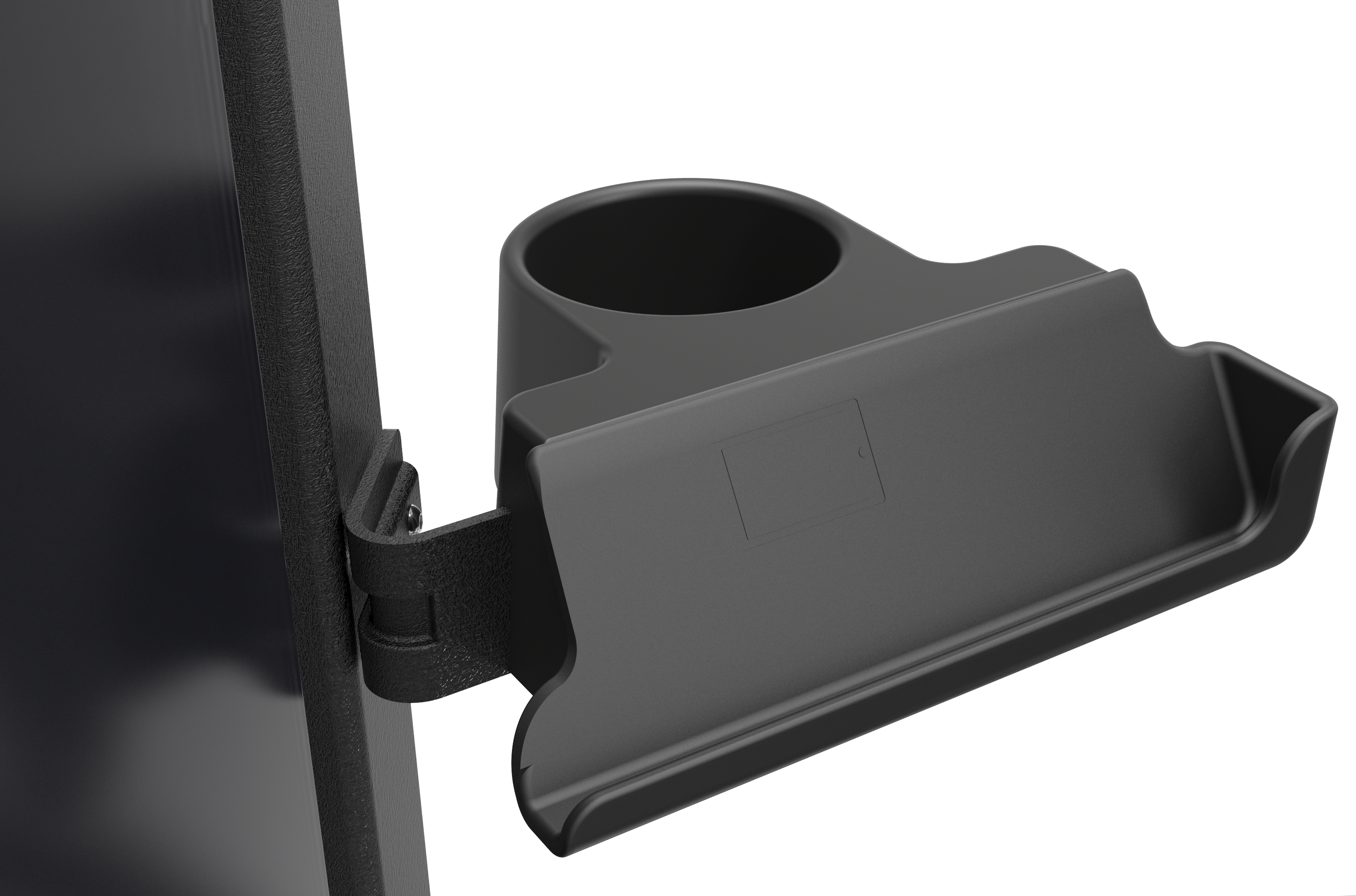 - Дизайн системы хранения аксессуаров полностью ориентирован на клиента, эргономичные ячейки для хранения бутылки и полочка для телефона или планшета находятся на расстоянии вытянутой руки.