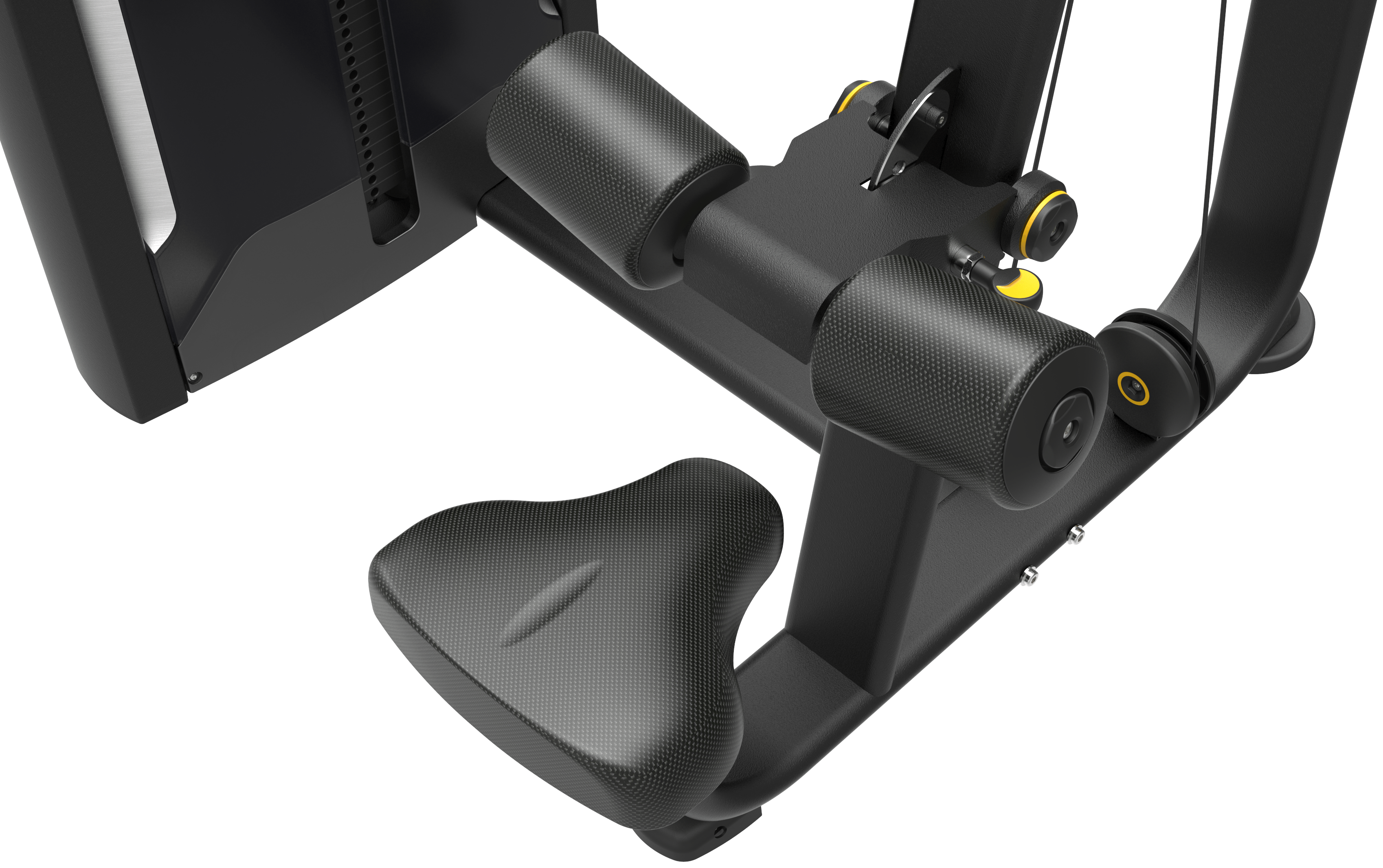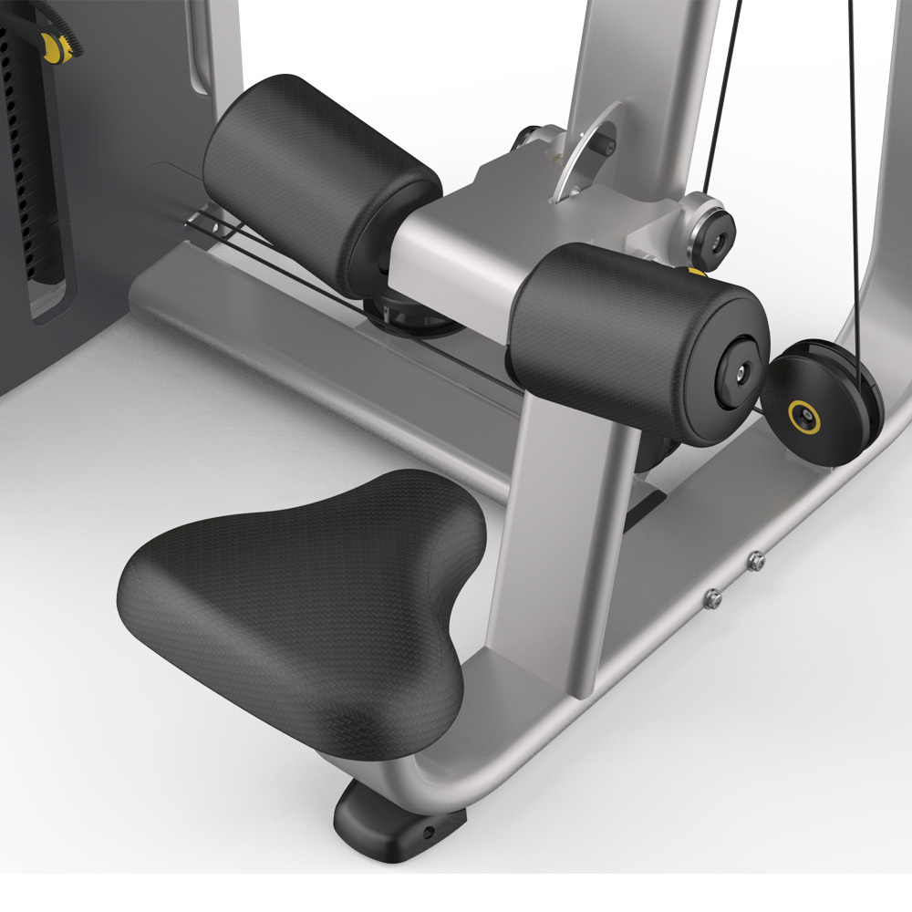 - Неподвижные валики для бедер расположены под оптимальным углом и обеспечивают надежную фиксацию тела атлета без дополнительных настроек.