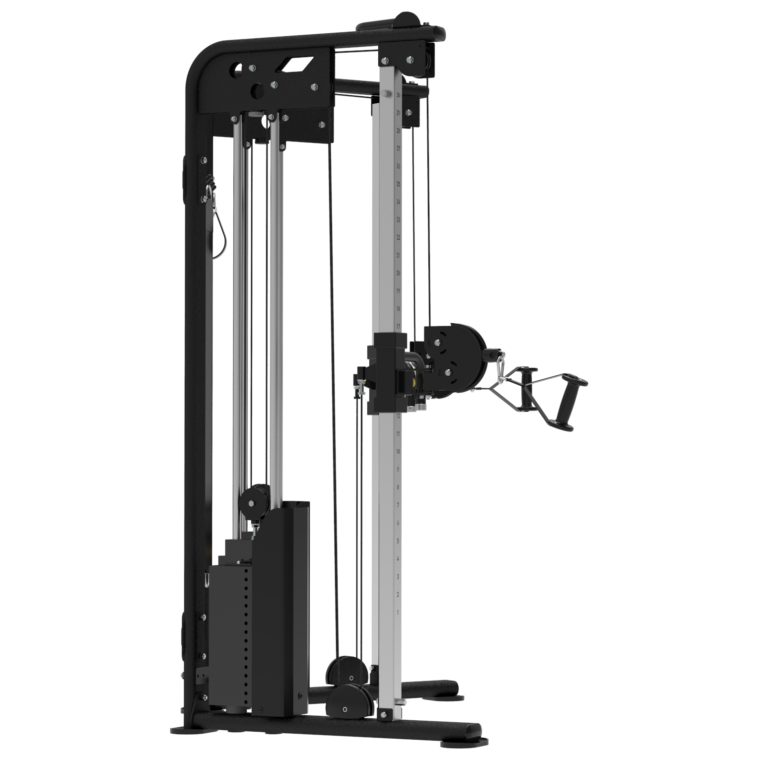 - Каждая стойка имеет 31 положение для фиксации тяговых блоков, что предоставляет практически безграничный выбор упражнений.