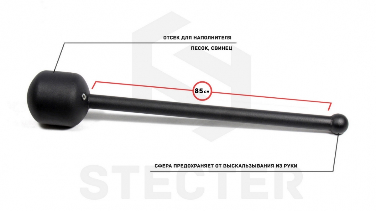 Эта кувалда настоящая находка для наследников богатырских традиций. Вес пустого снаряда составляет 11,8 кг, длина - 109 см, из которых 85 см – это рукоятка, на конце которой расположена пустотелая головка. При желании ее можно наполнить песком или дробью, доведя вес до 19 кг. Это избавит владельца молота от необходимости покупать несколько инструментов разного размера.