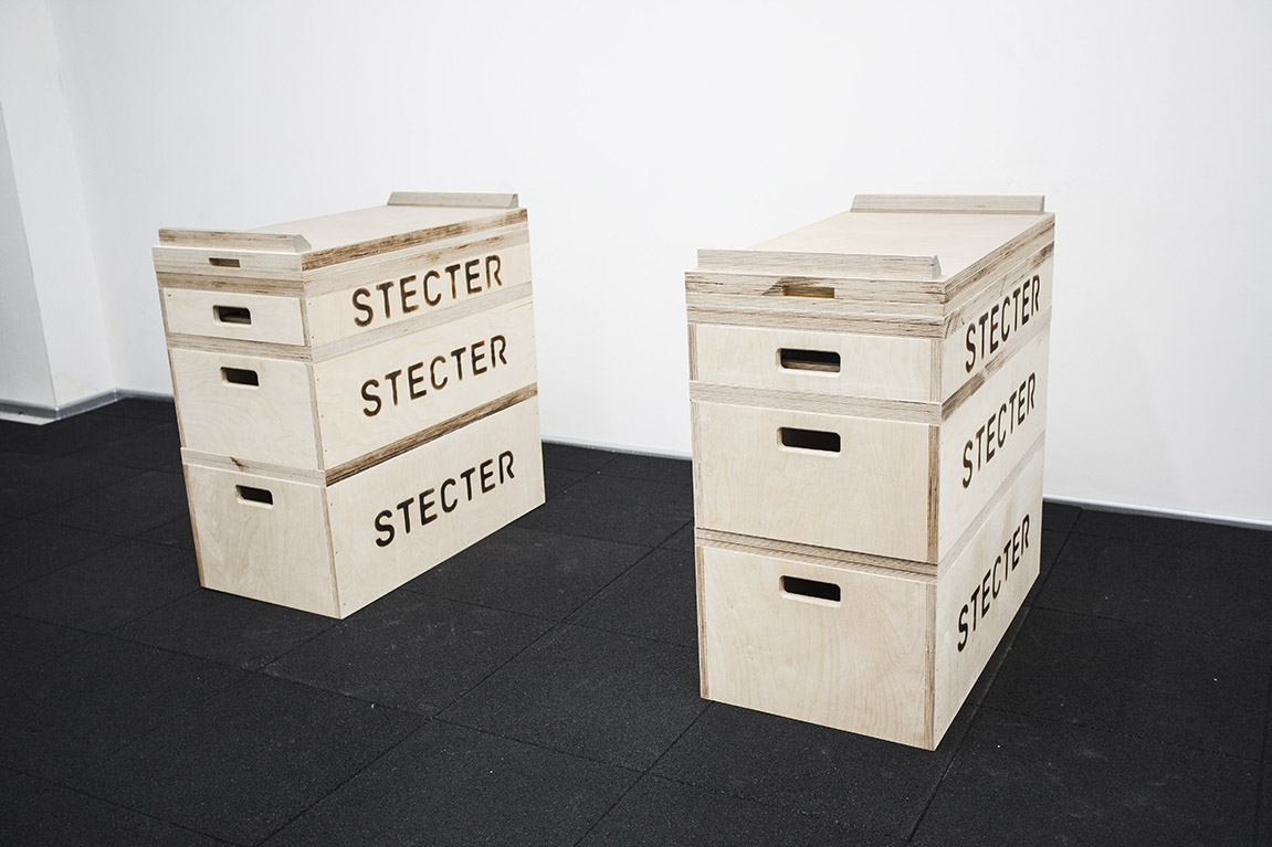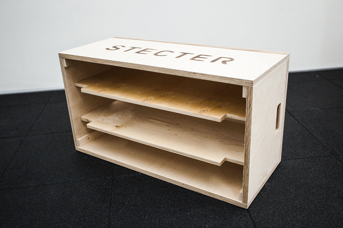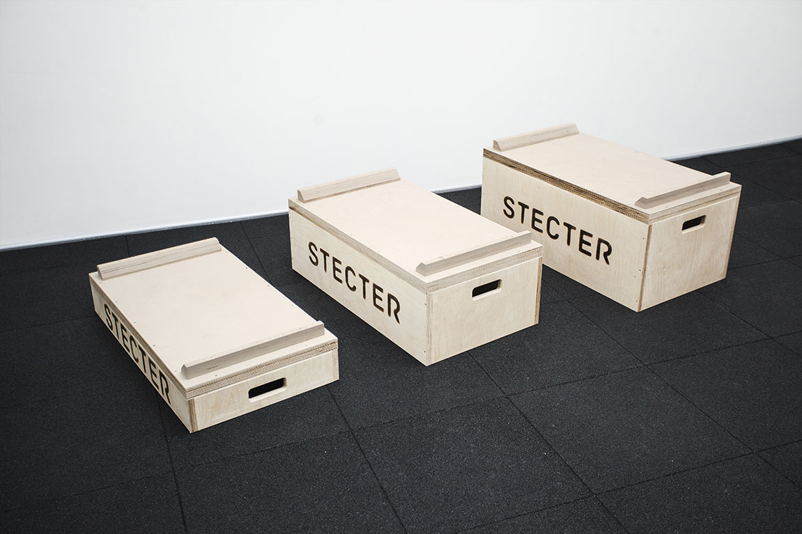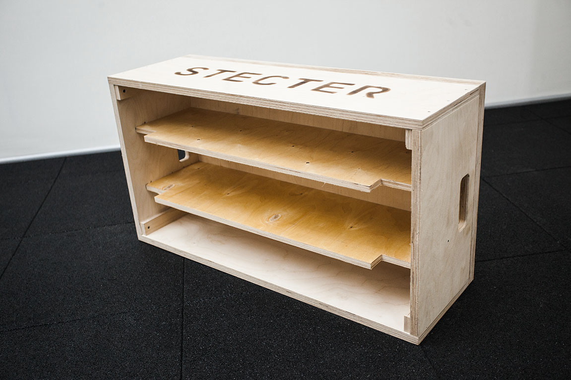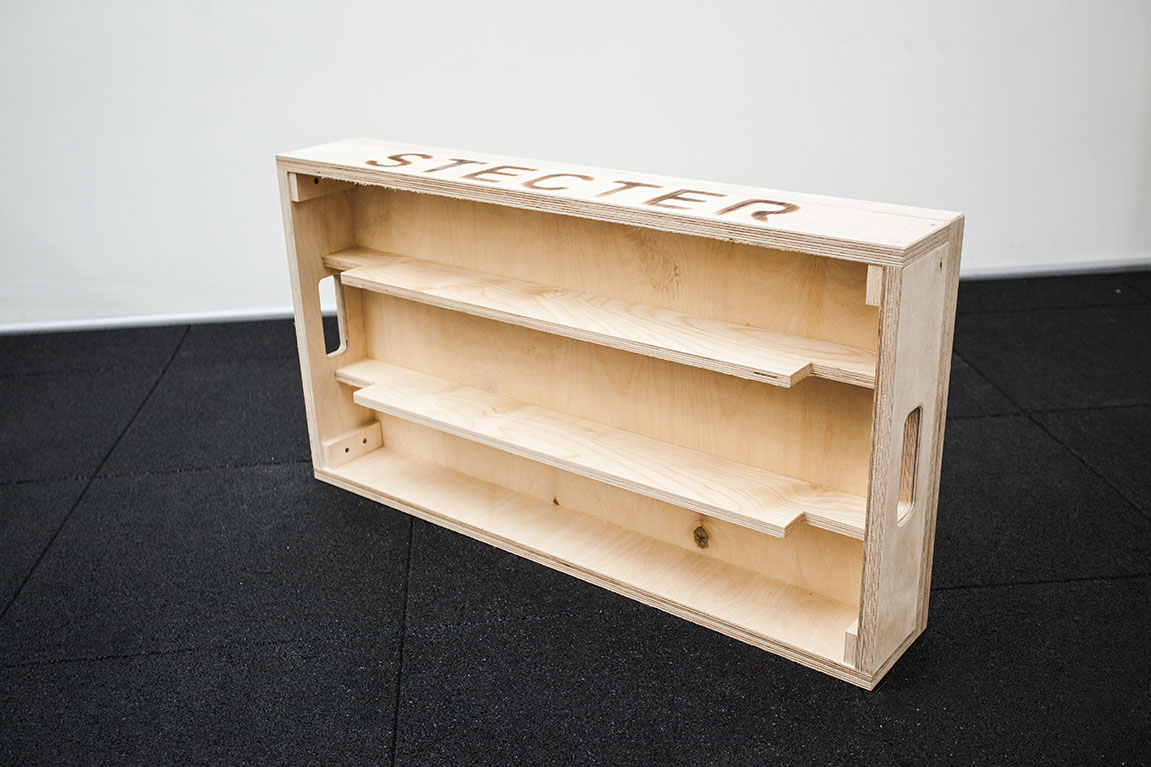 В набор деревянных плинтов для штанги от компании Stecter входят четыре парных блока. Каждая пара имеет собственную высоту: 60, 150, 300 и 380 мм. Они легко компонуются друг с другом для комфорта атлета. Для большей надежности элементы имеют внутренние ребра жесткости толщиной 15 мм, а толщина верхней крышки – 4 см. Данный набор имеет дополнительную "усиленную" крышку толщиной 60 мм - она увеличивает срок службы комплекта. Общая высота всех сложенных блоков составляет 89 см