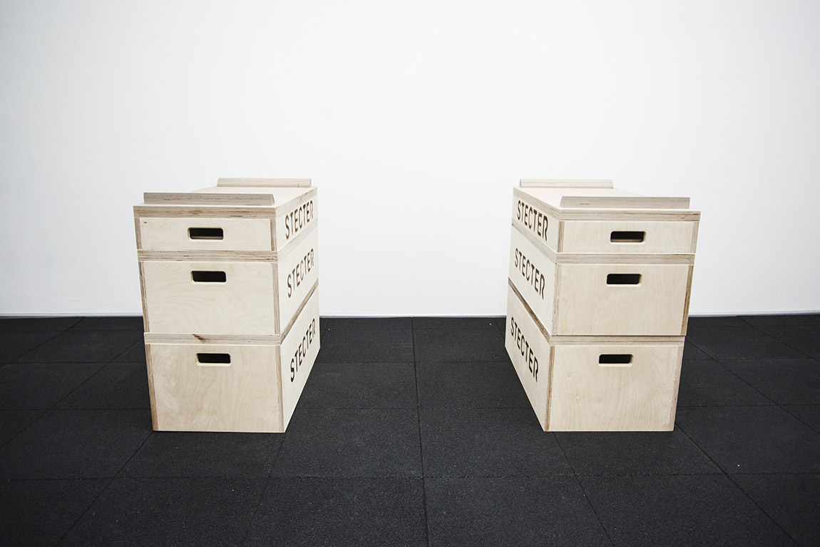 В набор деревянных плинтов для штанги от компании Stecter входят три парных блока. Каждая пара имеет собственную высоту: 150, 300 и 380 мм. Они легко компонуются друг с другом для комфорта атлета. Для большей надежности элементы имеют внутренние ребра жесткости толщиной 15 мм, а толщина верхней крышки – 4 см. Для того, чтобы максимально обезопасить атлета во время работы с этим снарядом, его поверхность тщательно отшлифована, а все острые грани притуплены. Использованная в производстве фанера отличается прочностью и долговечностью. Общая высота всех сложенных блоков составляет 83 см.