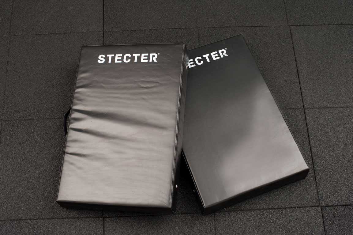 Мягкие плинты продаются парами. Размер каждого мата 750х500 мм. Высота 120 мм. Чехол сшит из прочного винила. Наполнителем служит вспененный полиуретан. Усиленная ручка вшита в каждый мат и облегчает его переноску. Специальные люверсы выпускают из мата излишний воздух при падении штанги.