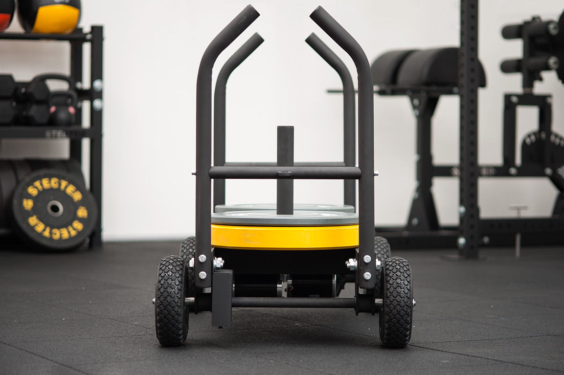 Сани серии «Вездеход» - это новое поколение тренировочных саней, которые можно использовать как в помещении, так и на улице без повреждения напольного покрытия. Резиновые колеса дают отличное сцепление с поверхностью пола, исключают шум и грохот во время выполнения упражнений. Нагрузка возрастает пропорционально скорости движения, таким образом каждый спортсмен может собственной скоростью бега регулировать необходимую и безопасную нагрузку.