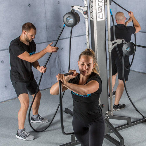 AEROBIS revvll PRO обладает всеми преимуществами канатных тренажеров, но при этом гораздо более компактен. Тренировка с revvll PRO – это больше, чем имитация подъема по канату или его перетягивания. Уникальная конструкция тренажера создает новый вид функциональной подготовки. Вы можете выполнять тягу, жим и вращения во всех направлениях, развивая силу, ловкость и координацию. Разнообразие выполняемых упражнений достигается за счет положения тела относительно тренажера, различных вариантов хвата и высоте монтажа.