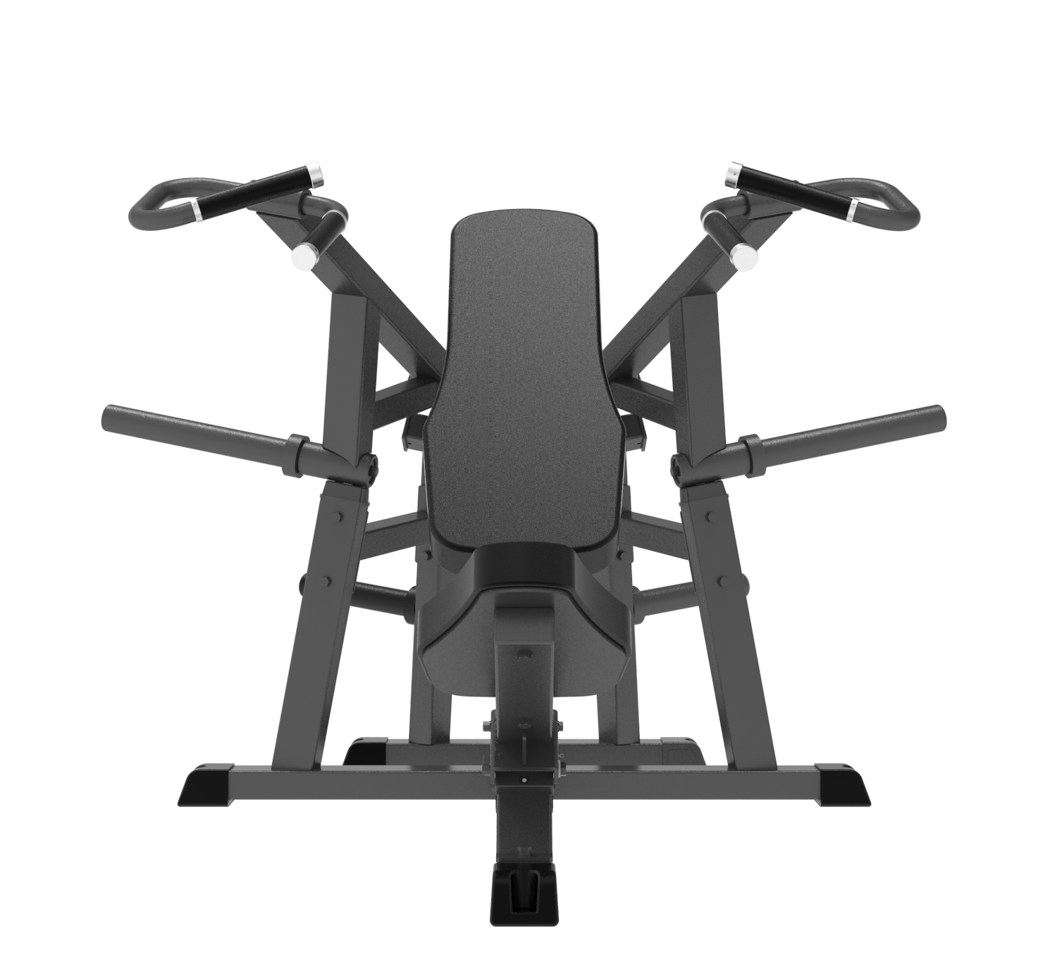 - Узел подвижного рычага расположен на уровне плеча среднестатистического пользователя, что обеспечивает более комфортные ощущения и точную проработку мышц.