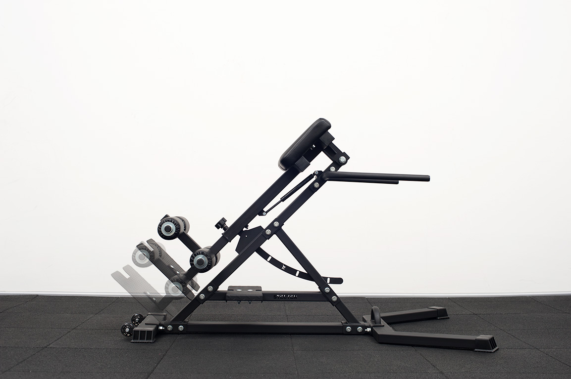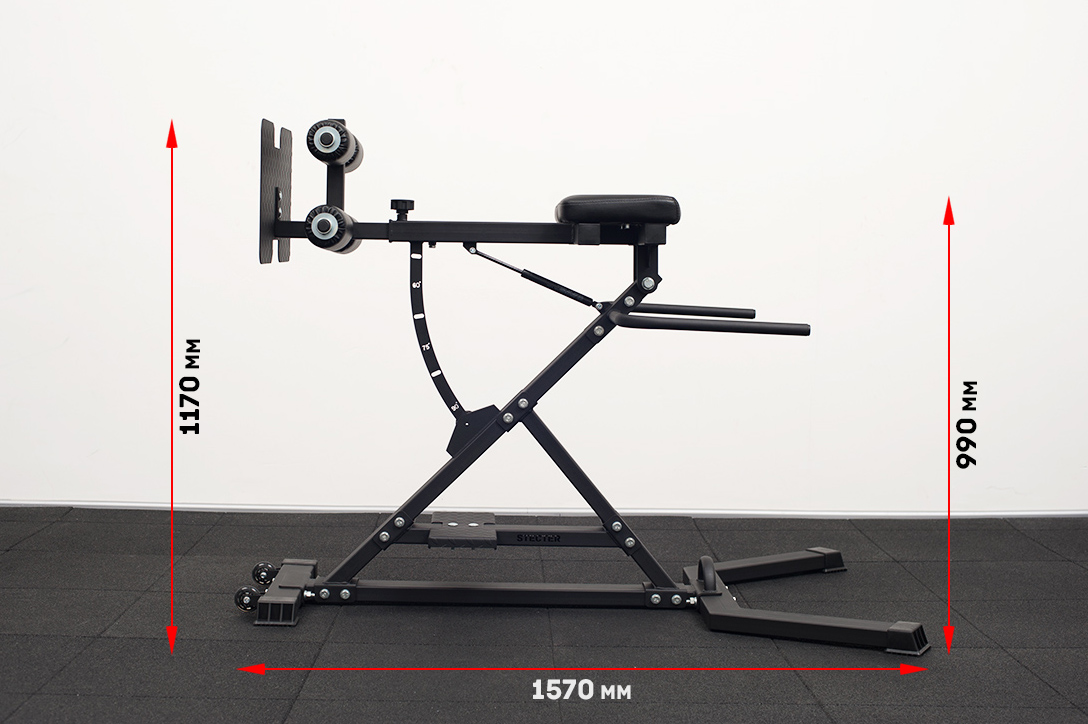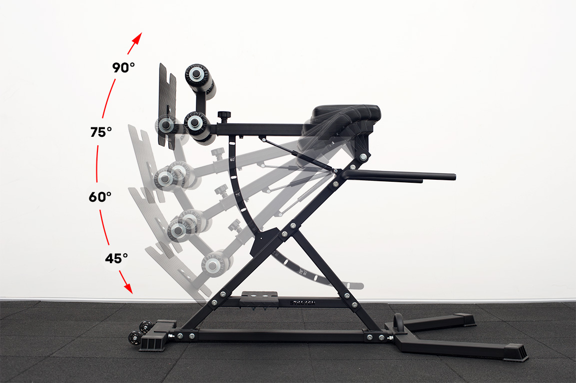 Наклонная гиперэкстензия STECTER объединяет в себе одновременно два классических тренажера: наклонную и горизонтальную гиперэкстензии. Специальный механизм регулировки угла наклона тренажёра 45-60-75-90 градусов позволяет выбирать степень нагрузки. Чем больше амплитуда наклона, тем сильнее растягиваются мышцы позвоночника и ног. Новичкам начать упражнения гораздо проще с наклона гиперэкстензии в 45 градусов и по мере наращивания мышечного корсета менять угол наклона и увеличивать нагрузки.