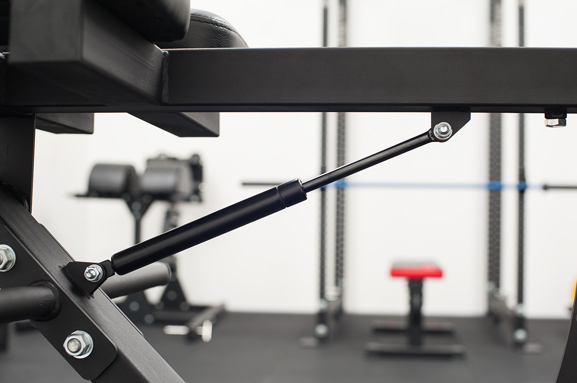 Для более легкой смены наклона мы установили в каркас рамы газлифт. Он помогает поднимать и опускать упор для ног. С его помощью даже у девушек не возникнет сложностей с настройкой тренажера.