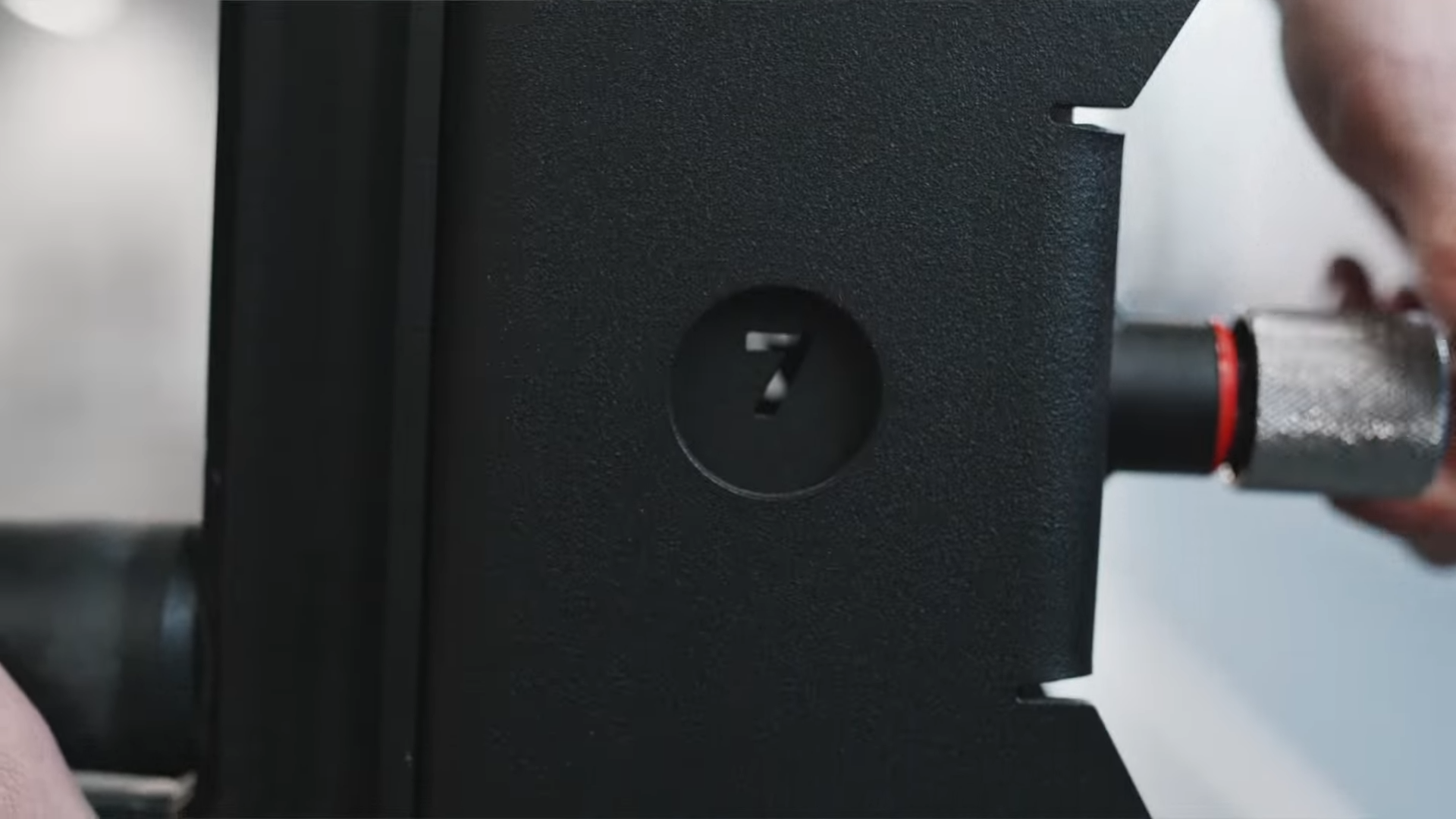 Крюки для штанги можно легко отрегулировать с помощью защелки с накаткой, расположенной за крюками. Просто потяните за штифт и поднимите или опустите крюки штанги на нужную высоту. Отпустите штифт и убедитесь, что он полностью зафиксирован. Легко проверить четкие и удобные индикаторы высоты, расположенные по обеим сторонам каждой стойки, чтобы атлеты могли убедиться, что крюки находятся на одинаковой высоте из любого положения. Эта важная функция позволяет пользователям найти оптимальное начальное и конечное положение, подходящее и безопасное для их тренировок.