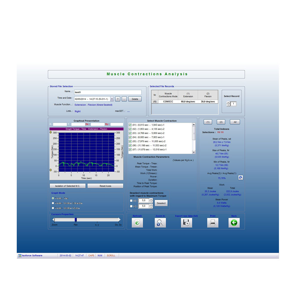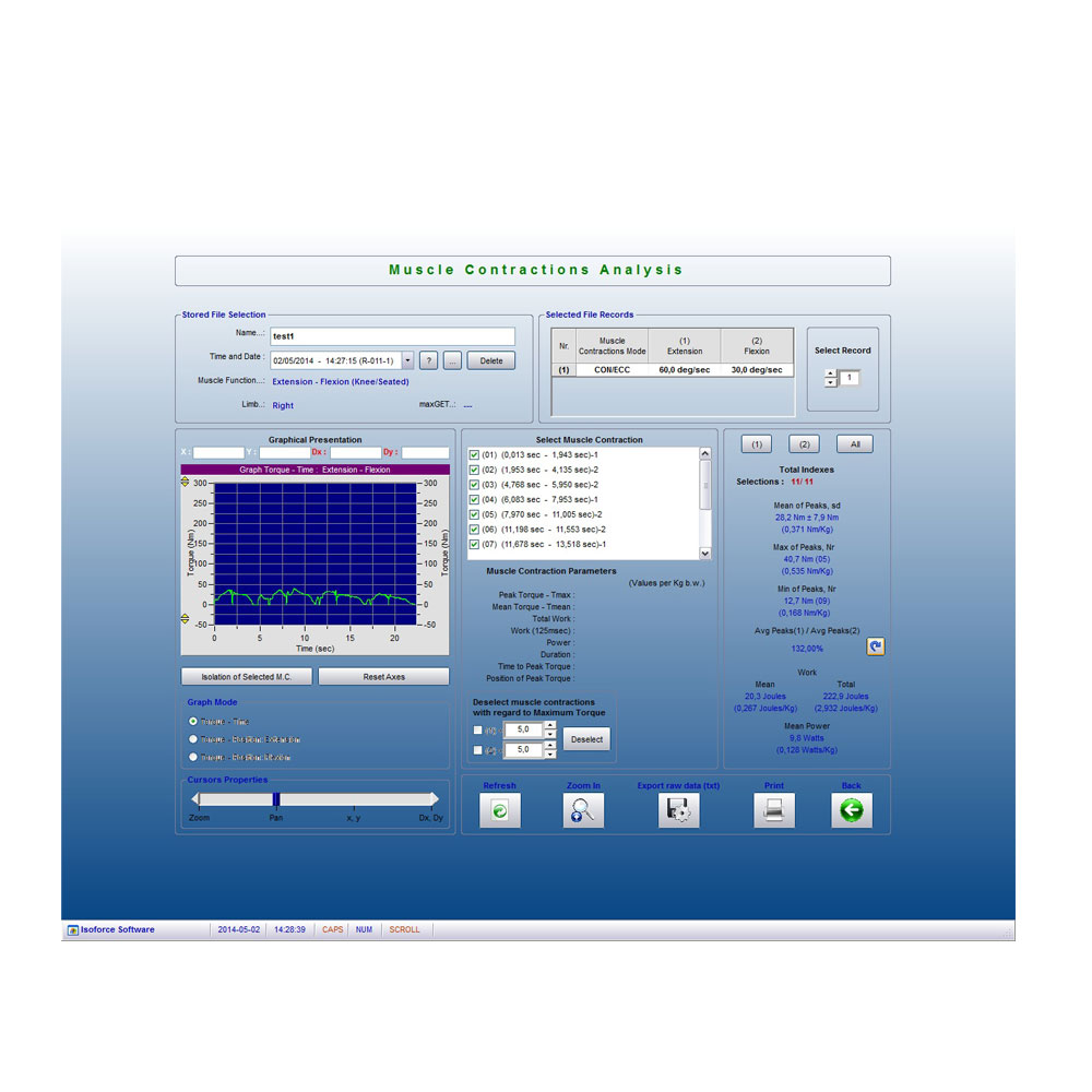 Система регистрирует, сохраняет и сравнивает параметры мышечной и опорно-двигательной системы, которые можно оценить и распечатать для дальнейшего анализа.