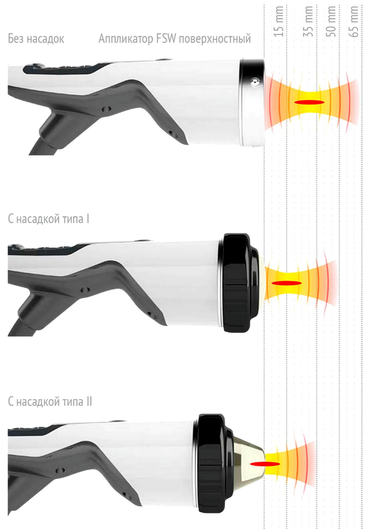 - Максимальный выбор насадок для аппликаторов «МАСТЕРПУЛЬС МП 100»: стандартные, фасциальные, спинальные (опция)