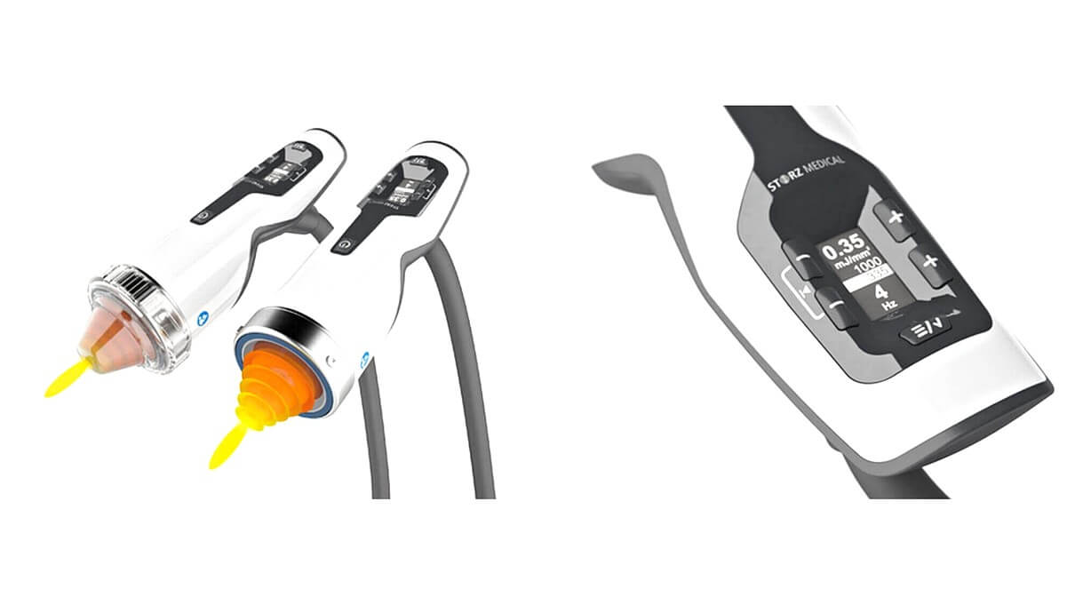 Аппараты в составе сета оснащены эргономичными аппликаторами-«пистолетами», которые не переутомляют руку даже при высокой загруженности специалиста. Уникальная особенность аппликаторов Storz Medical – размещение в рукоятке дисплея с клавишами управления. Специалист может отслеживать и менять терапевтические параметры (частота импульсов, сила волны и др.), не прерывая УВТ-процедуру.