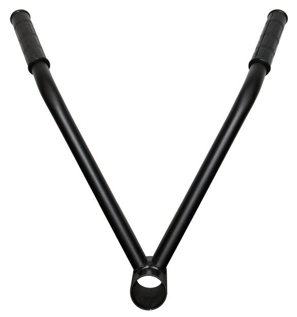 Рукоятка на гриф – важный аксессуар, применяемый для выполнения Т-образной тяги – одного из основных упражнений для развития мышц спины. Угловая рукоятка имеет V-образную форму, на концах расположены удобные резиновые ручки, улучшающие сцепление руки со снарядом. Ширина рукоятки – 42 см, она совместима с олимпийскими грифами (диаметр втулки 50 мм). Купить угловую рукоятку для Т-тяги вы можете в нашем магазине
