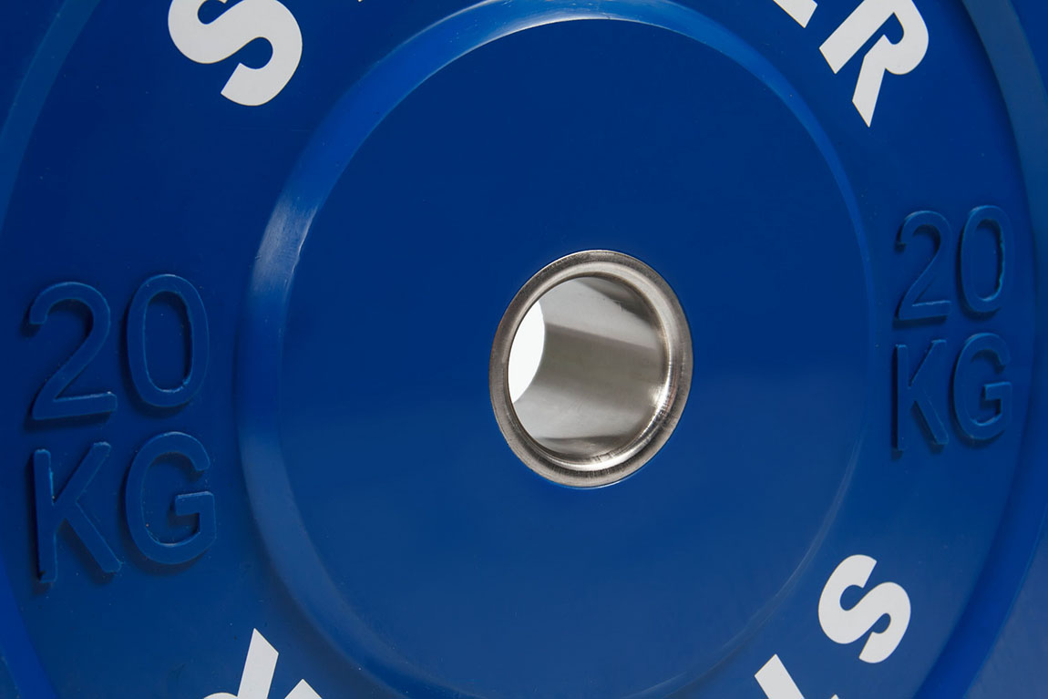 Каучуковые диски устойчивы к разрушению и могут прослужить долго даже при интенсивном использовании. Все диски имеют одинаковый наружный и внутренний диаметр – 450 мм и 51 мм соответственно. Толщина бампированных блинов обусловлена их весом – чем он больше, тем толще диск. Выпускают диски номиналом 5, 10, 15, 20 и 25 кг.