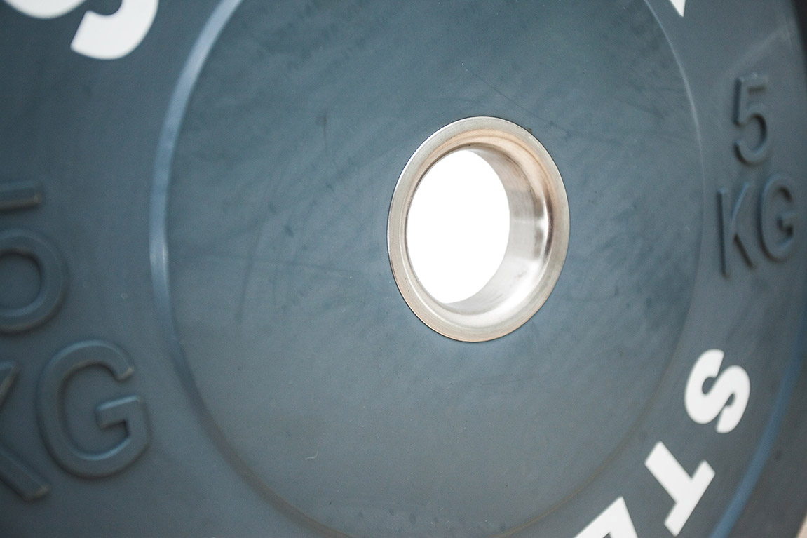 Втулка для грифа выполнена из нержавеющей стали, благодаря чему диск жестко удерживается на нем.