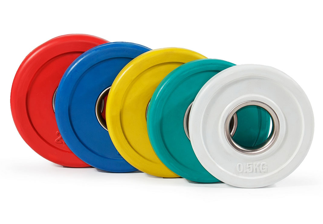 Когда атлеты толкают штангу со своими предельными весами и стремятся к личному рекорду, то каждый килограмм имеет значение. Малые тренировочные цветные диски предназначены именно для достижения поставленной цели. Различают 5 видов дисков весом от 0,5 до 2,5 кг. Посадочное отверстие в центре диска диаметром 50,4 мм подойдет для любого стандартного олимпийского грифа. Их расцветка белый, зеленый, желтый, синий и красный соответствуют олимпийскому стандарту и соответствуют единому стилю при загрузке штанги. Материал - каучук.