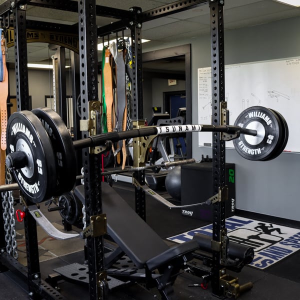 ВНИМАНИЕ: Гриф Force Bar весит не более 6,8 кг (15 lbs) и может легко опрокинуться со скамьи или крюков J-образной стойки, если диски не сбалансированы должным образом.