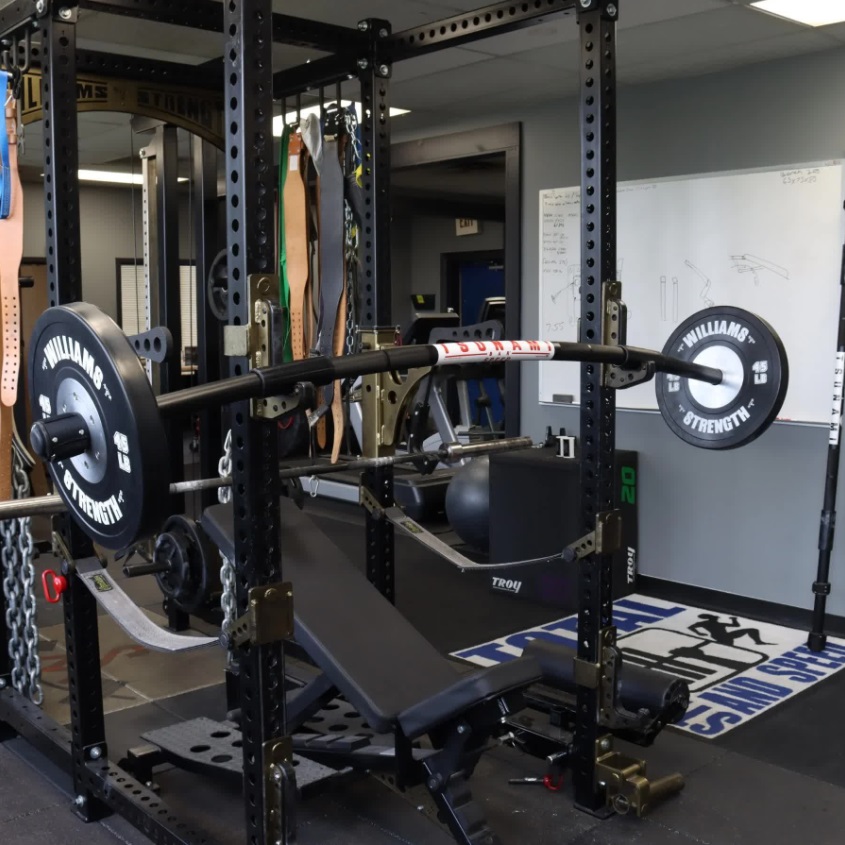 ВНИМАНИЕ: Штанга Speed Bar весит не более 7 кг и может опрокинуться со скамьи или стойки J-Cups, если не правильно расположить весовые диски.