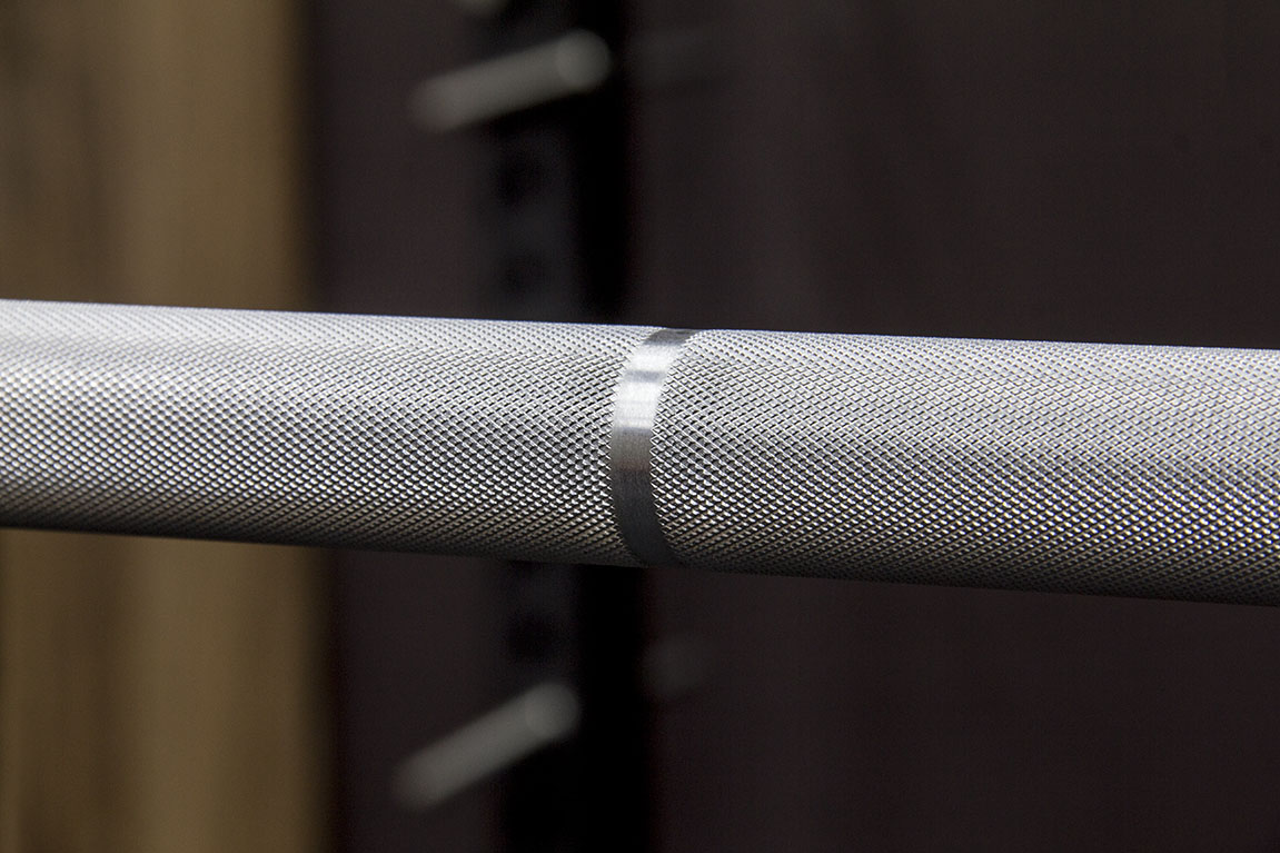 - на поверхности рукоятки грифа нанесена гибридная насечка - она обеспечивает атлету надежный и крепкий хват, позволяющий выполнять серии динамических упражнений, но не натирает мозоли на ладонях