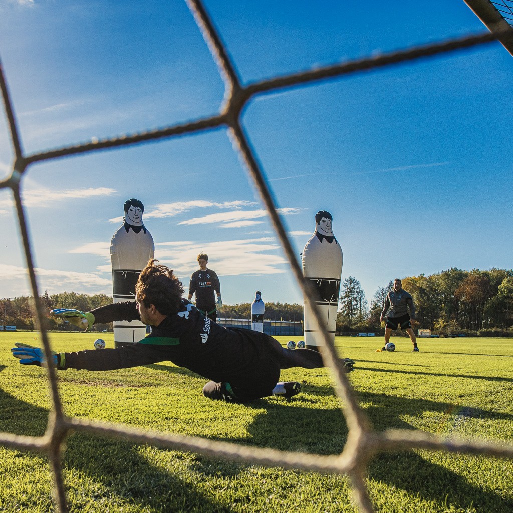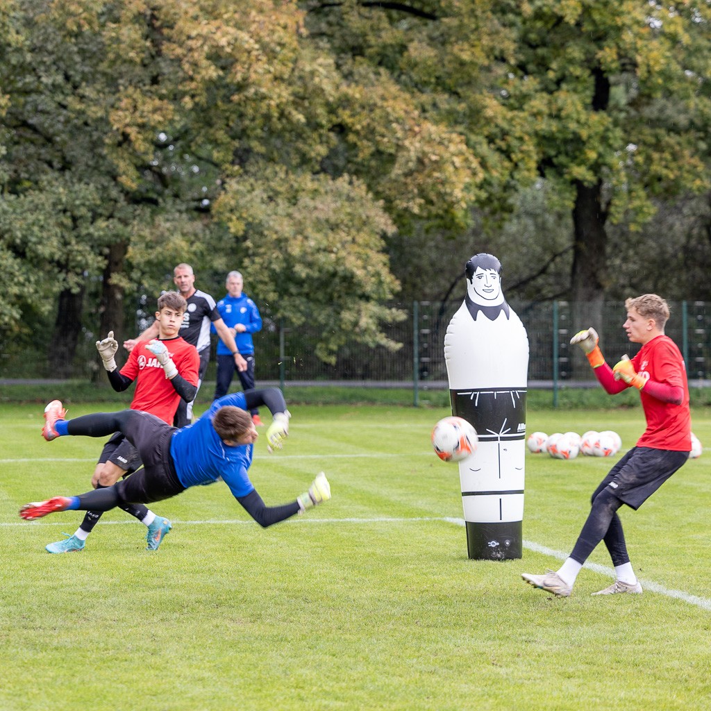 Надувной силуэт Air-Body, производства фирмы MGT-Sport, Германия - это полноразмерная имитация игрока (футболиста). Силуэт приводится в рабочее состояние накачиванием воздуха под давлением внутрь фигуры. Учитывая безопасную конструкцию из ПВХ риск травмироваться сводится к минимуму.