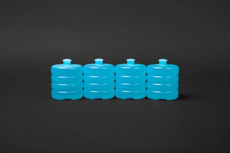 Заморозьте пакеты Cool-not-Cold на ночь. Поместите пакеты в Narwhals и наполните водой температурой ~75°F (24°C) до отметки наполнения.
