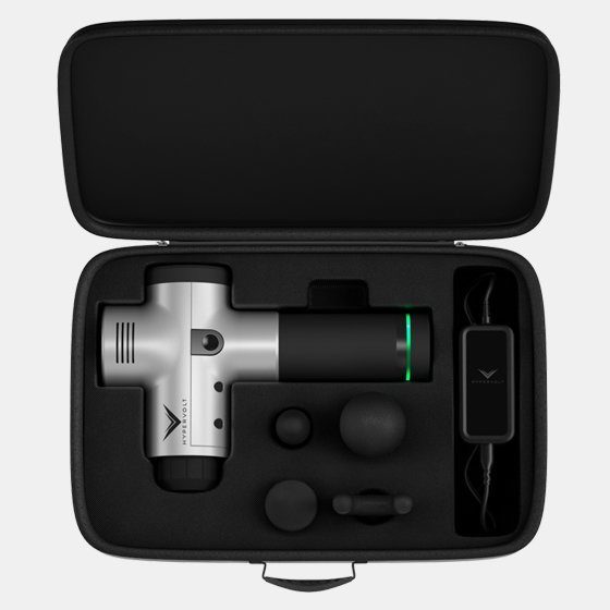 Кейс предназначен для переноски Аппарат для вибрационного массажа Hypervolt. Кейс тщательно продуман – он вмещает и сам массажер, и насадки, и сменный аккумулятор. Аккуратное хранение. Стильный дизайн – черный цвет, матовая поверхность с логотипом, ручка для переноски – доставит Вам эстетическое удовольствие.