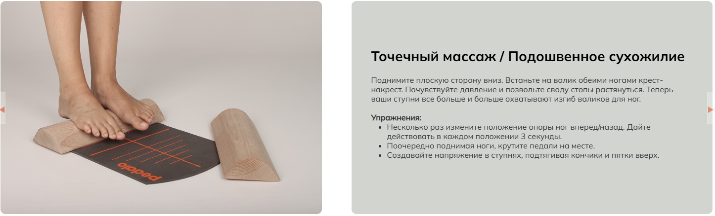 Опустите плоскую сторону вниз и встаньте на ролики в продольном положении. Почувствуйте давление и позвольте своду стопы растянуться. Теперь ваши ступни все больше и больше охватывают изгиб валиков для ног.