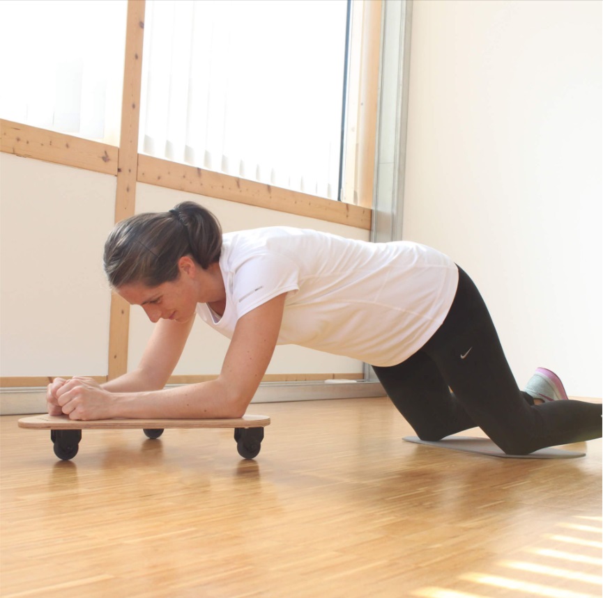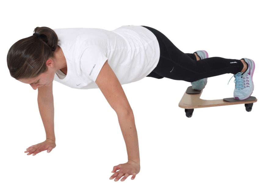 Неподготовленные начинают со стойки на колене в опоре для предплечий, перемещая основной тренажер вперед и назад. Практикующие дополнительно поднимают колени. Всегда следите за тем, чтобы не упасть в полую крестовину во время выполнения упражнения.