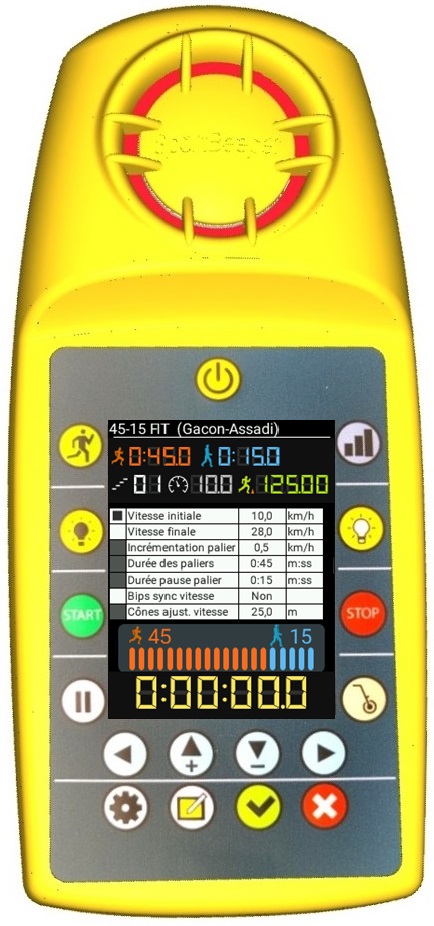 - Меню тренировок: включает 13 тестов VMA + 5 настраиваемых тестов. Это меню идеально подходит для всех ваших тестов VMA.